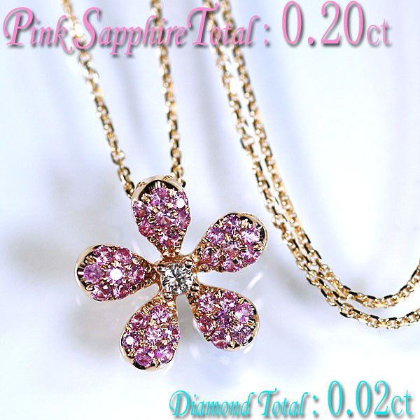 サファイア ネックレス K18PGピンクゴールド 天然ピンクサファイア0.20ct/ダイヤ0.02ctさくら(桜)型ペンダント&ネックレス