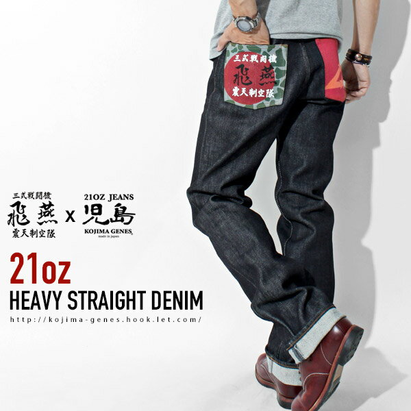 三式戦闘機 飛燕 21oz ストレートデニム!児島ジーンズ ボトム メンズ ヘビーオンス 飛燕 プリント ミリタリー 日本製