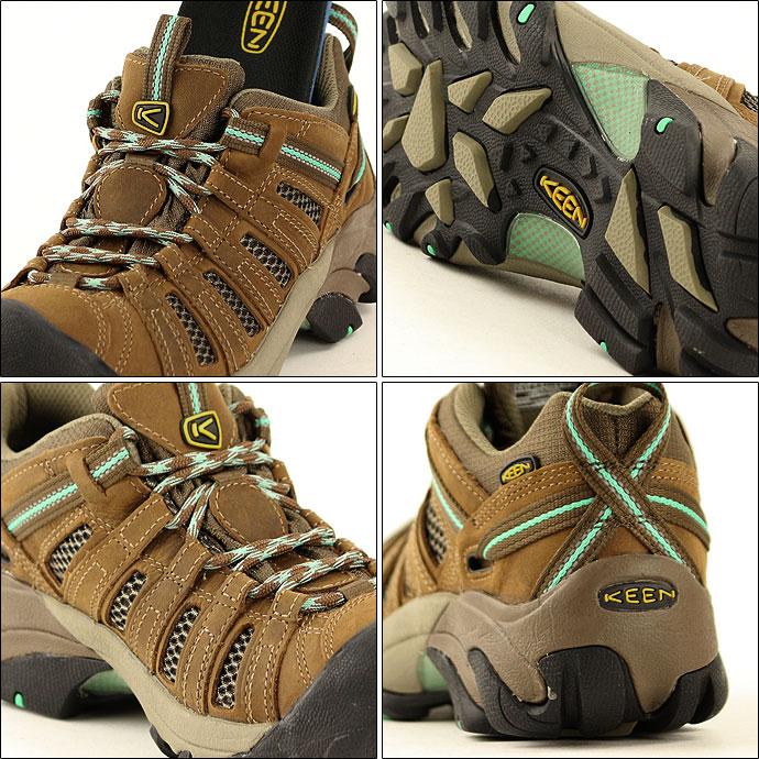 キーンのシューズ! ●アッパーには耐水性レザーとメッシュ素材を使用し、通気性に優れています。