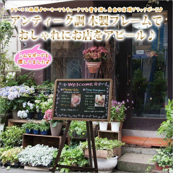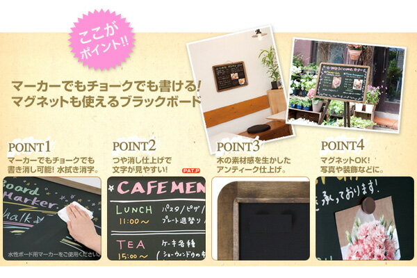 マグネットで写真やチラシを貼り付けてもOK!! カフェ、雑貨屋、お花屋、レストラン、美容院など、様々なお店の店舗看板として使って頂けます! つや消し仕上げで文字が見やすい!!枠には木の素材を生かしたアンティークスタイルです♪