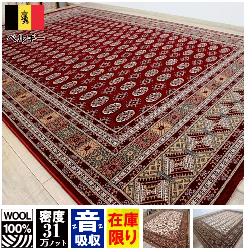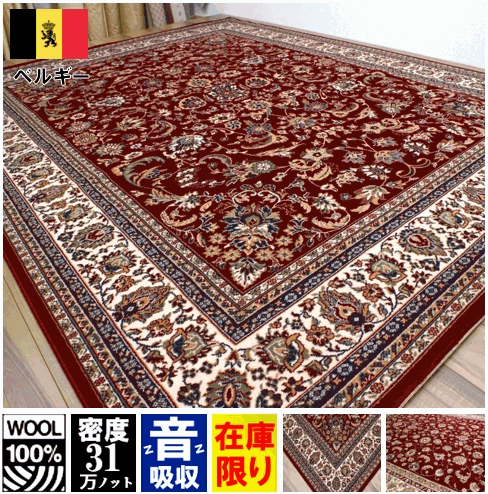 カーペット 3畳 ラグ 4畳 絨毯 ベルギー ウール じゅうたん おしゃれ 高級 激安 安い ウィルトン クラシック 赤 レッド 送料無料 パキスタン 【品名 OSTA/サフィール】 約4畳 200×300cm