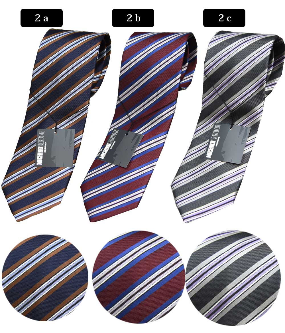 【コンビニ受取対応商品】ミチコロンドン シルクブランドネクタイ まとめ買いお得 ■MICHIKO LONDON こだわりの日本製■ お好みの柄をお選びください *クリックで拡大します* 素材 シルク100% 日本製 サイズ 大剣幅: 8〜8.5cm 長さ:145cm程度 ギフトラッピングは通常便(送料別)をおすすめします
